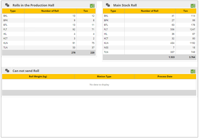 Üretim ve Ana Depodaki Bobinler izlendiği ekrandır