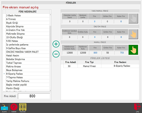 Üretim Sırasında oluşan tüm firelerin izlendiği ekrandır