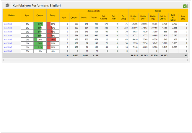 Konfeksiyon Makinaları Günlük Performans