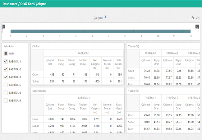 Fabrikaların Çalışma, Duruş ve Mesai bilgilerini saat cinsinden gösteren dinamik rapordur