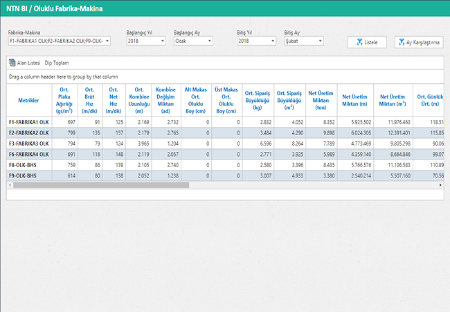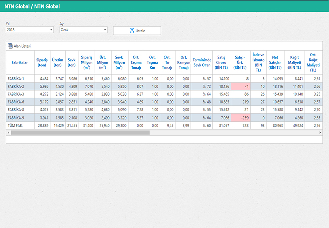 Tüm Fabrikaların Sipariş, Üretim, Sevkiyat,Finans Karşılaştırılmasının yapıldığı rapordur