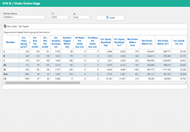 Seçilen fabrikanın dalga bazında üretimini gösteren raporudur